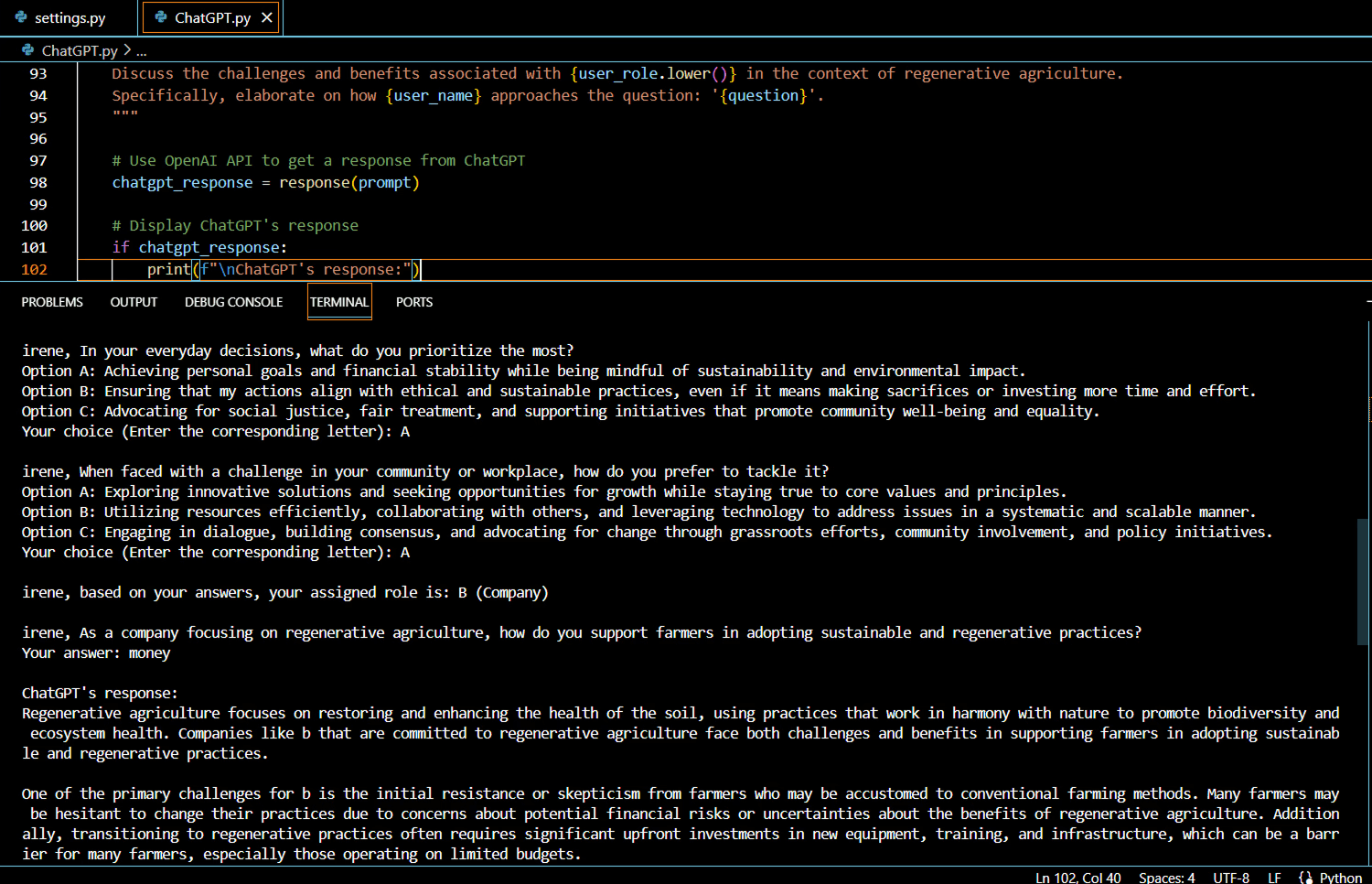 Role-based ChatGPT chatbot showing how politicians, farmers, and consumers view the food system differently.