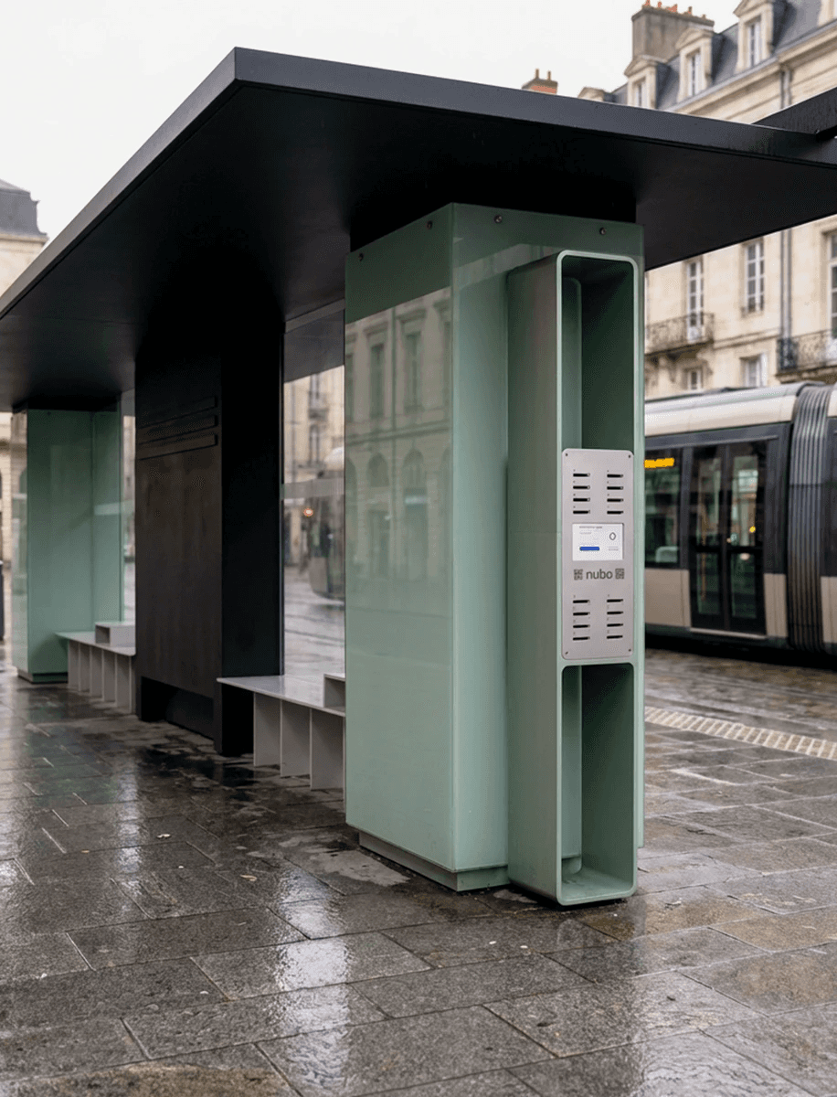 For the power bank itself, we focused on what it's like to actually carry and use it. Most of the sketching work went into figuring out cable integration and how it would attach to your phone without feeling like you're juggling two separate devices. The charging stations were designed to sit at tram stops, where we could integrate solar panels into the shelter roof without adding visual clutter to the street. Each station stores 12 power banks and has backup batteries that collect solar energy during the day, so the system keeps working at night.