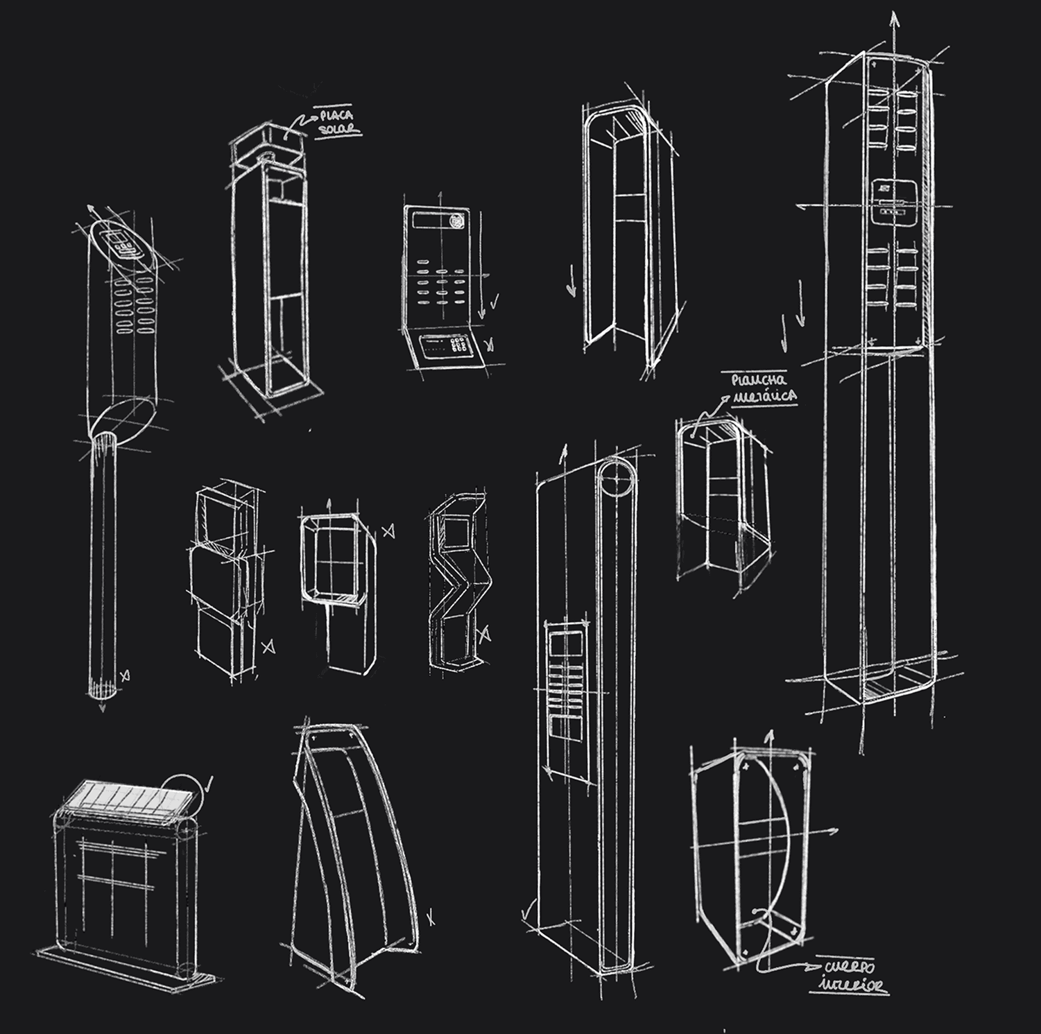 The power bank needed to look and feel good since it stays with users for a while, not just sit in their bag. Through sketching, we worked out details like cable integration and how it would attach to the phone to feel like one device rather than two clunky pieces. The charging station started as a basic locker concept and evolved through iterations into something more refined. Since these would be placed on streets, the priority was creating a design that served its function without adding visual clutter to public spaces.